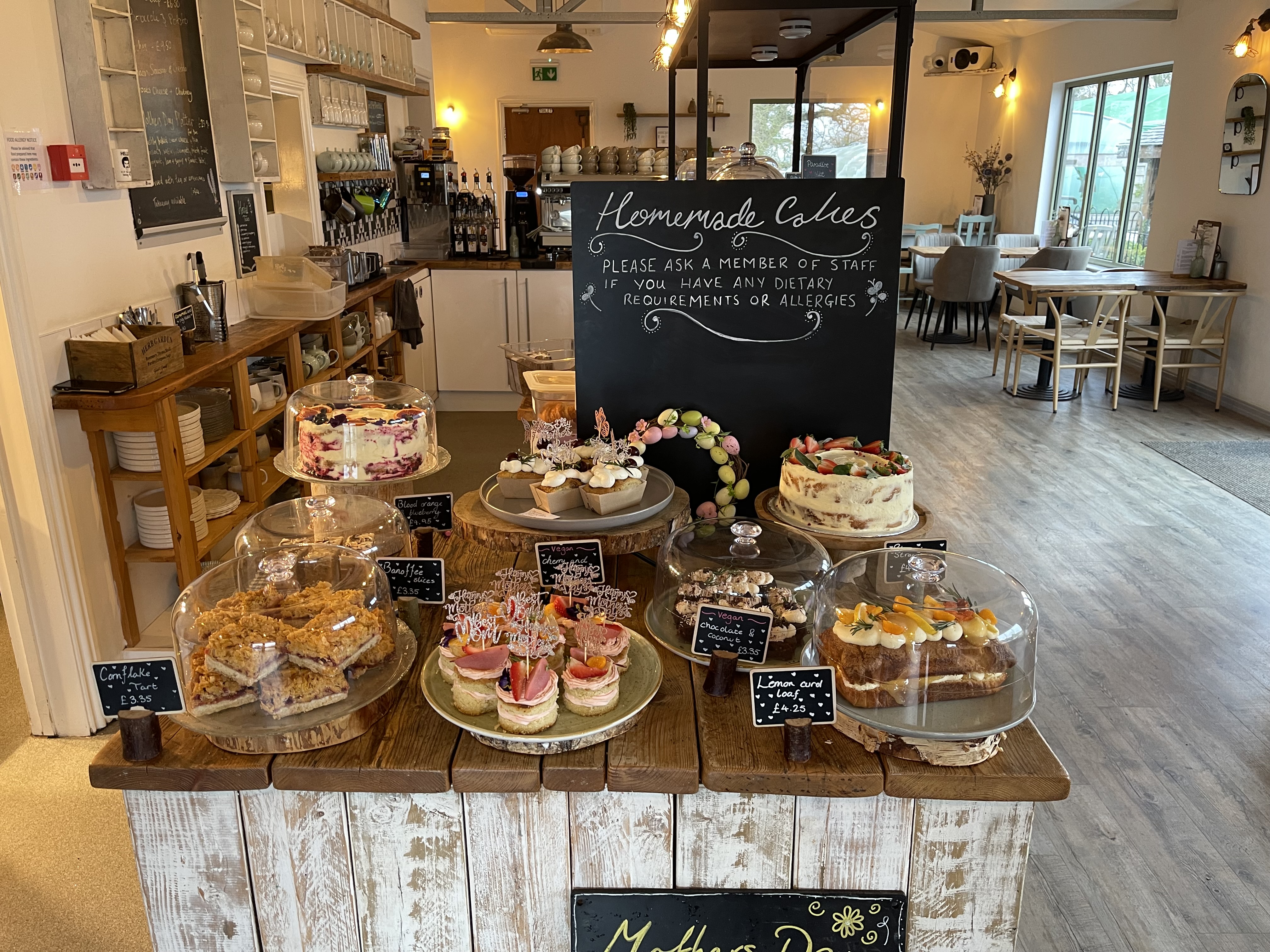 Open since 2015, we are now a busy 150-seater cafe, notable to cyclists for having plenty of bike parking, extensive outdoor covered and heated areas as well as efficient service, situated in the heart of Collyers Nurseries in Borrowash, 3 miles due-east of Derby. Our family-run garden centre cafe serves fantastic coffee, homemade cakes and light snacks in attractive indoor and outdoor areas. Of note to cyclists, we are located right beside the popular cycling route along Nottingham Road between Risley & Borrowash on the outskirts of Borrowash. This is only 800m from National Cycle Route 6 at Borrowash, and 3 miles from The Nutbrook Trail Route 67 at Sandiacre. PipTree Cafe has an unmissable large A-Frame sign on the south side of the Nottingham Road, and is open from 9:30-4pm daily, 10-3:30pm Sunday, closed Mondays. Our cafe has wrap-around outdoor seating areas with ample space to park up your bike and enjoy a few refreshments, and we truly can boast some of the very best coffee, bakes & cakes in one of the most attractive and individual cafes is the area. We opened on July 22nd and already enjoy regular custom from several cycling groups. We hope to see you soon! James & Jen PipTree Cafe Collyers Nurseries & Garden Centre