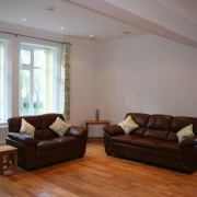 The duplex apartment comprises of two large bedrooms, one a master double bedroom with ensuite and the second twin bedroom, as well as a family bathroom, all on the first floor. There is also a toilet on the ground floor. All of the bedrooms benefit from parkland and woodland views, as well as views across farmland. The living area on the ground floor is spacious and open plan, with separate seating area with leather sofas and a home cinema and music system with LCD TV, HD DVD/CD player, Freeview, phone/tablet connection and radio tuner, with speakers and controls in all bedrooms and bathrooms, as well as a dining area and kitchen. The kitchen includes an integrated dishwasher, washing machine, fridge/freezer, oven, hob and microwave, all with a granite worksurface and kitchen lighting.