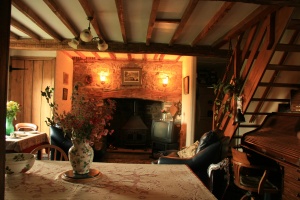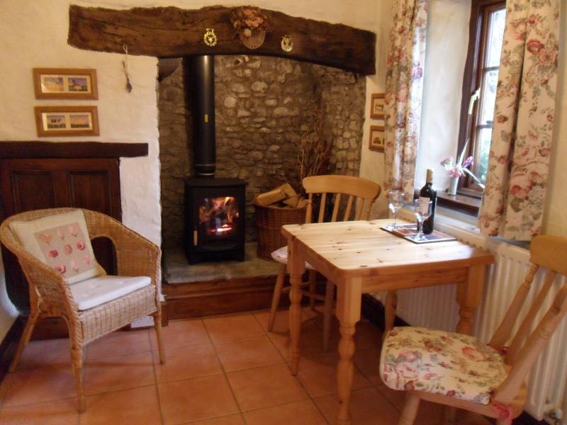 The beamed, cosy cottage is a welcome home for all visitors with comfortable seating, well equipped kitchen with pine table and chairs, a beamed gallery bedroom with King -size bed, a wood burning stove and French doors opening on to a private garden with patio.